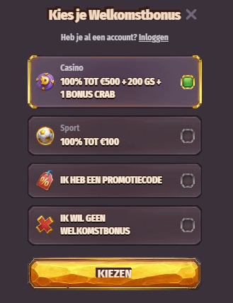 | 4e Storting | 100% | €100 | 50 spins | Sweet Bonanza |